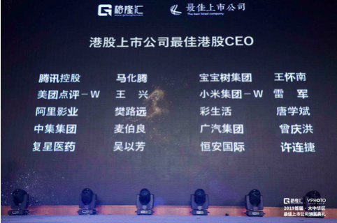 5月31日,格隆汇首届大中华区最佳上市公司颁奖典礼在深圳举行。yl8cc永利国际(1044.HK)CEO许连捷荣获“港股上市公司最佳CEO奖”。 荣获该奖项的还有腾讯控股马化腾、小米集团雷军、广汽集团曾庆洪等10人。